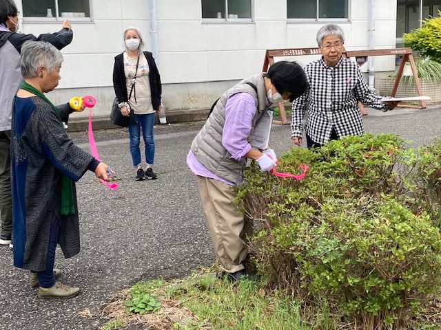 9月27日に「広場の植栽・防災・環境共生を考える」を開催しました。那須まちづくり広場の改修内容はカフェ・市場・集会室の拡張、看取りができるサービス付き高齢者住宅など多岐にわたりますが、単に建物をリニューアルするだけでなく、緑が多い場所にしたいし、災害にも強い場所としたいとの想いで6月から植栽・防災・環境共生について検討してきました。今回はその検討結果とりまとめの会でした。会議後に伐採を予定する木にはピンクのテ-プ、移植・剪定する木には黄色のテ-プをつけるなどの作業をしました。今後、とりまとめに沿って植樹やビオトープづくりなど進めていきます。いっしょに楽しく体を動かしていただける方、大募集中です。