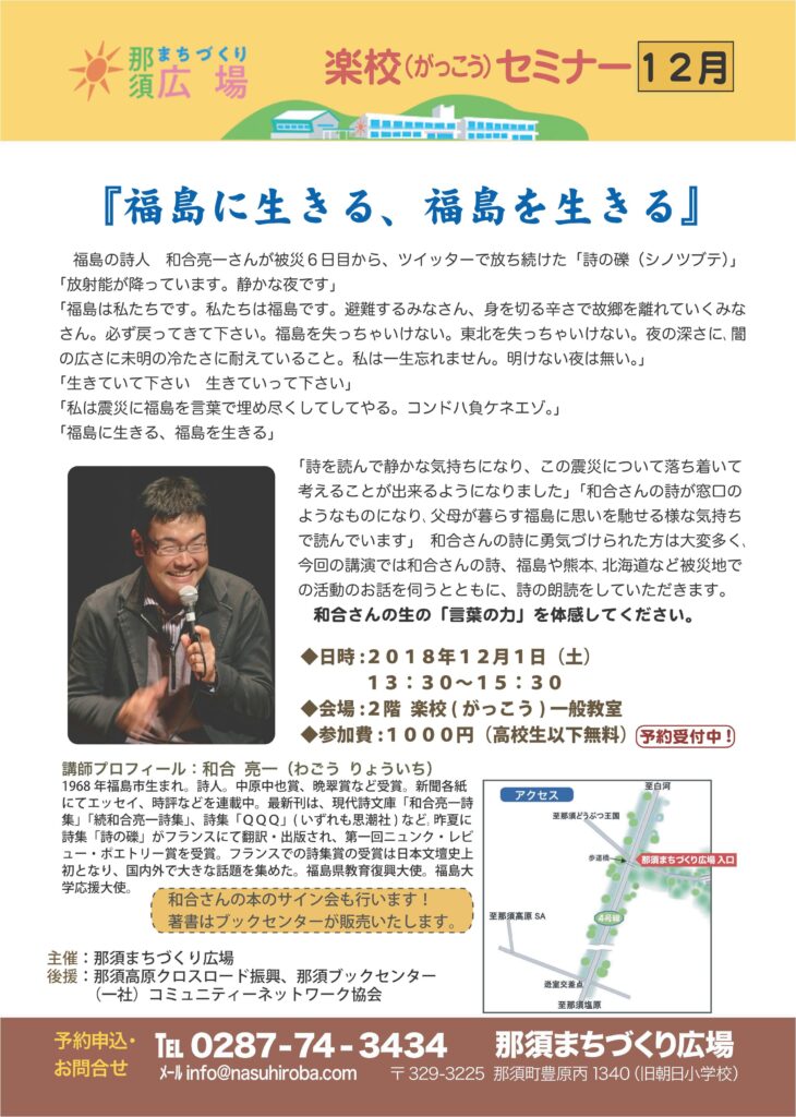 なお、印刷したチラシでは当方のミスで12月1日の曜日が日曜と記載されてしまったものがあります。土曜日の開催が正しいです。留意ください。