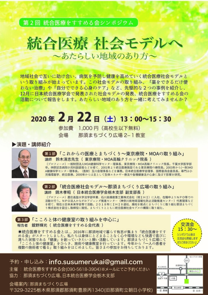 2/22(土)統合医療シンポジウム「統合医療 社会モデルへ ~あたらしい地域のあり方~」