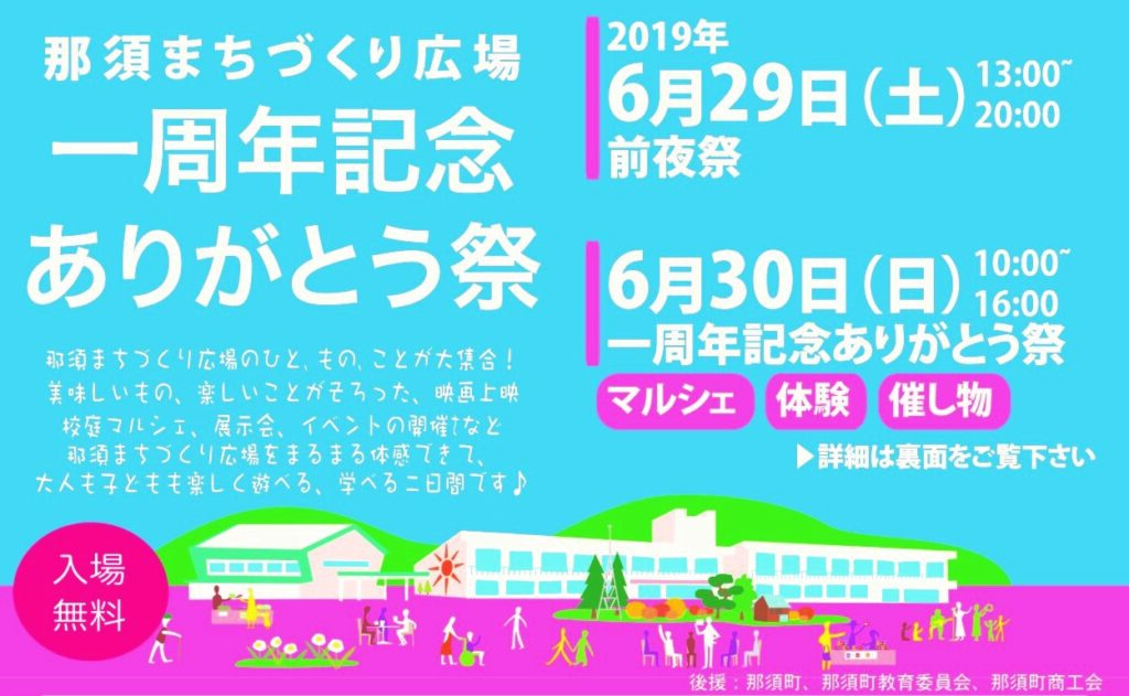 6月30日(日)には『那須まちづくり広場一周年記念ありがとう祭』と銘打ち