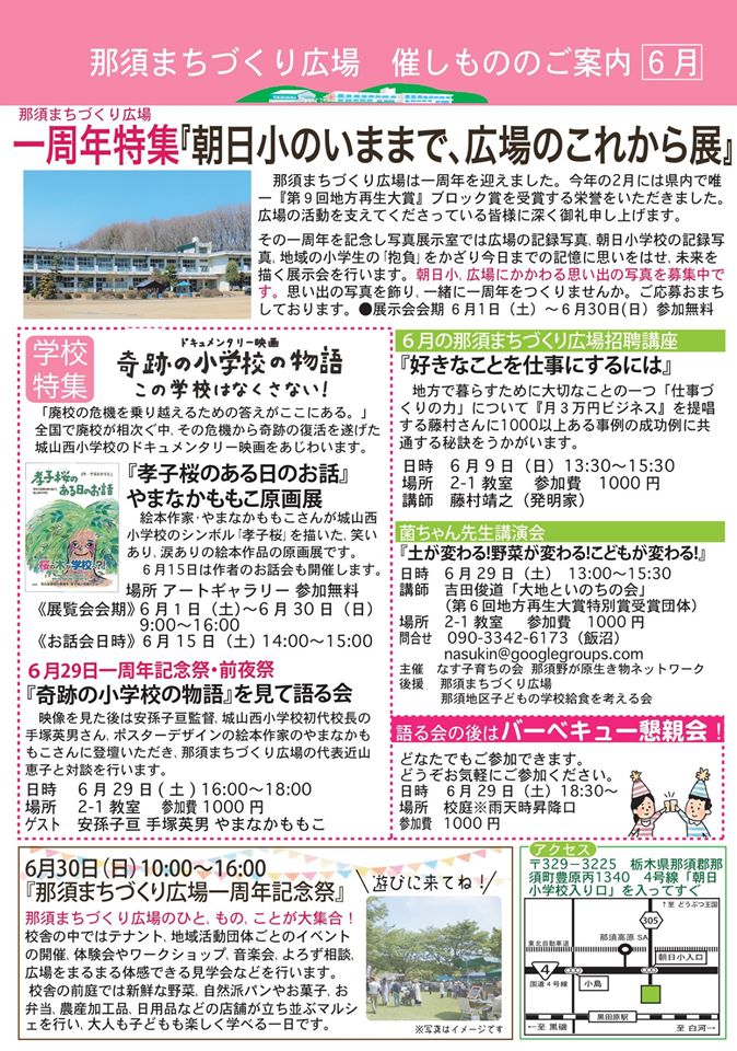 那須まちづくり広場の6月の催し物チラシが出来上がりました。
