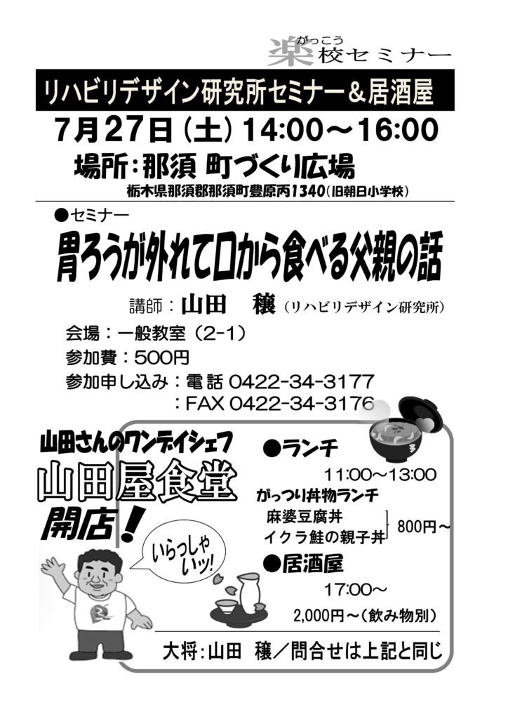 7月27日(土)の介護セミナー&居酒屋のご案内