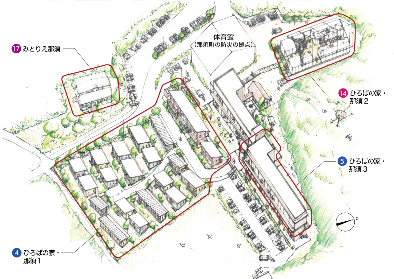 高齢者を中心に多世代向きの「住まい」から、暮らしを支えるケアまで。そして、コミュニティゾーンには、交流ホール、カフェ、マルシェ、ゲストハウス、アートギャラリー、ケーキやパン工房……。