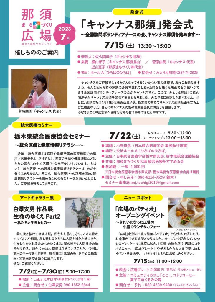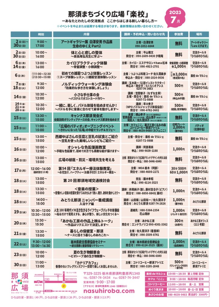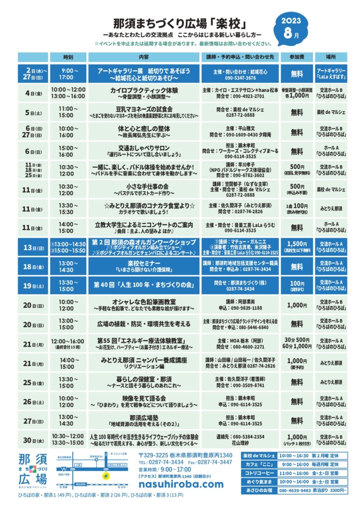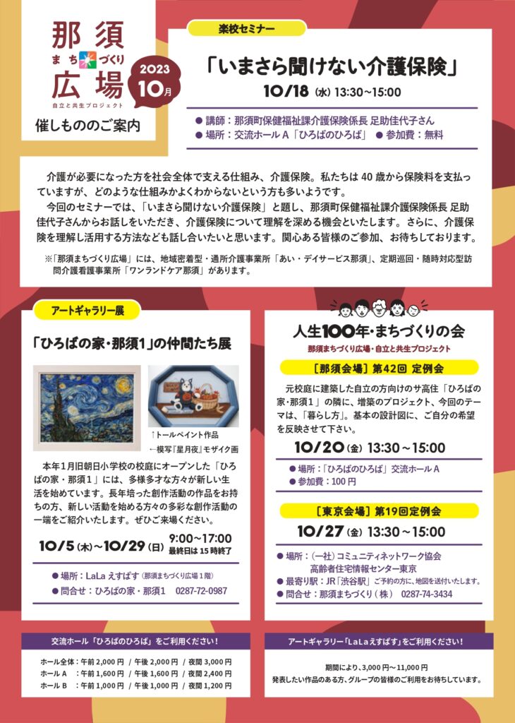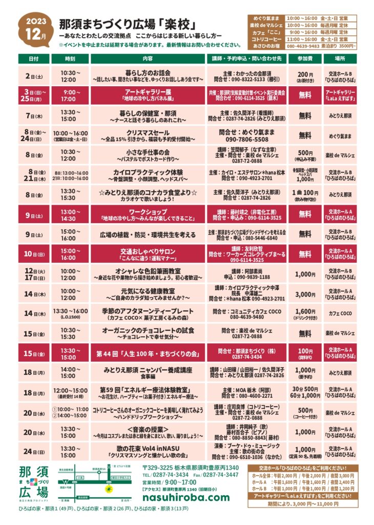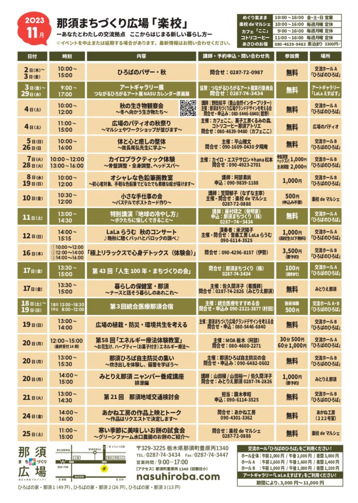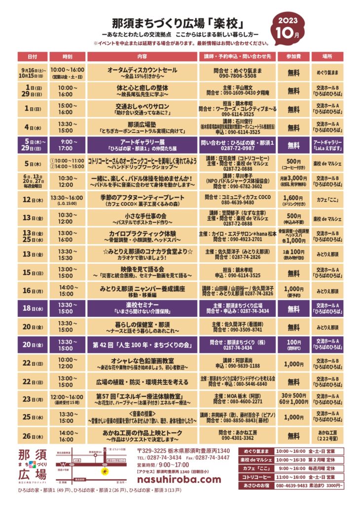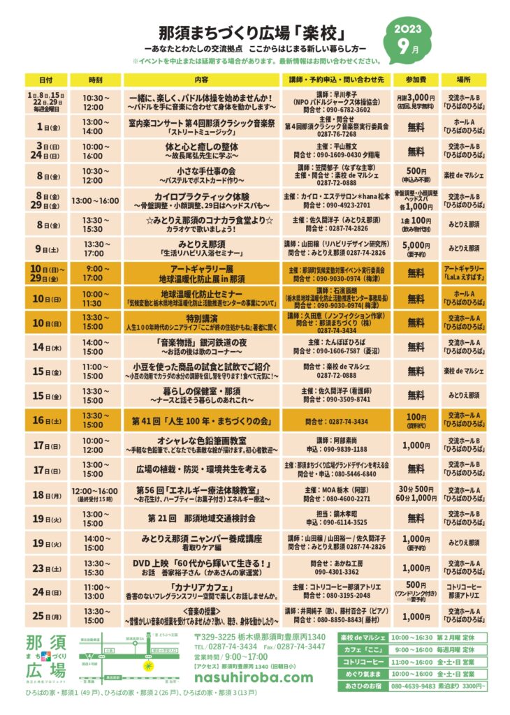 | 那須広場塾「とちぎカーボンニュートラル実現に向けて」 | 日付:10月4日(水) | 時間:13時30分~15時 | 講師:石川俊行(栃木県環境森林部気候変動対策課カーボンニュートラル推進担当) | 申込:那須広場塾 090-6114-3525 | 参加費:無料 | 場所:「ひろばのひろば」交流ホールA | 詳細(備考): |