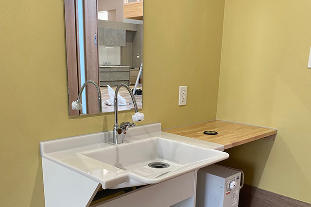 車椅子での洗面時に使い安いように、細やかな工夫がされています。