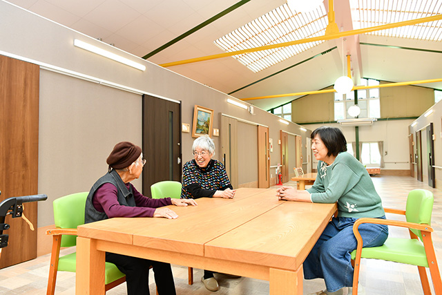 近隣のデイサービスをご利用されたり、ラウンジでお仲間と 楽しい語らいも。