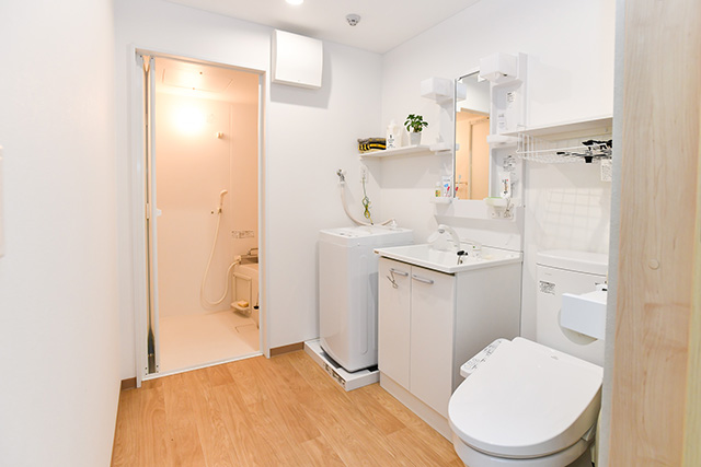 トイレ、洗面所も広く可動性に優れています。
