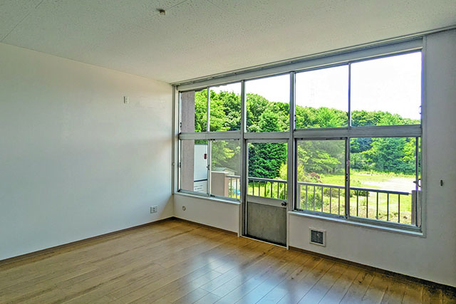 南側の居室には、大きな窓とベランダがあり、校庭や木々が一望できます。