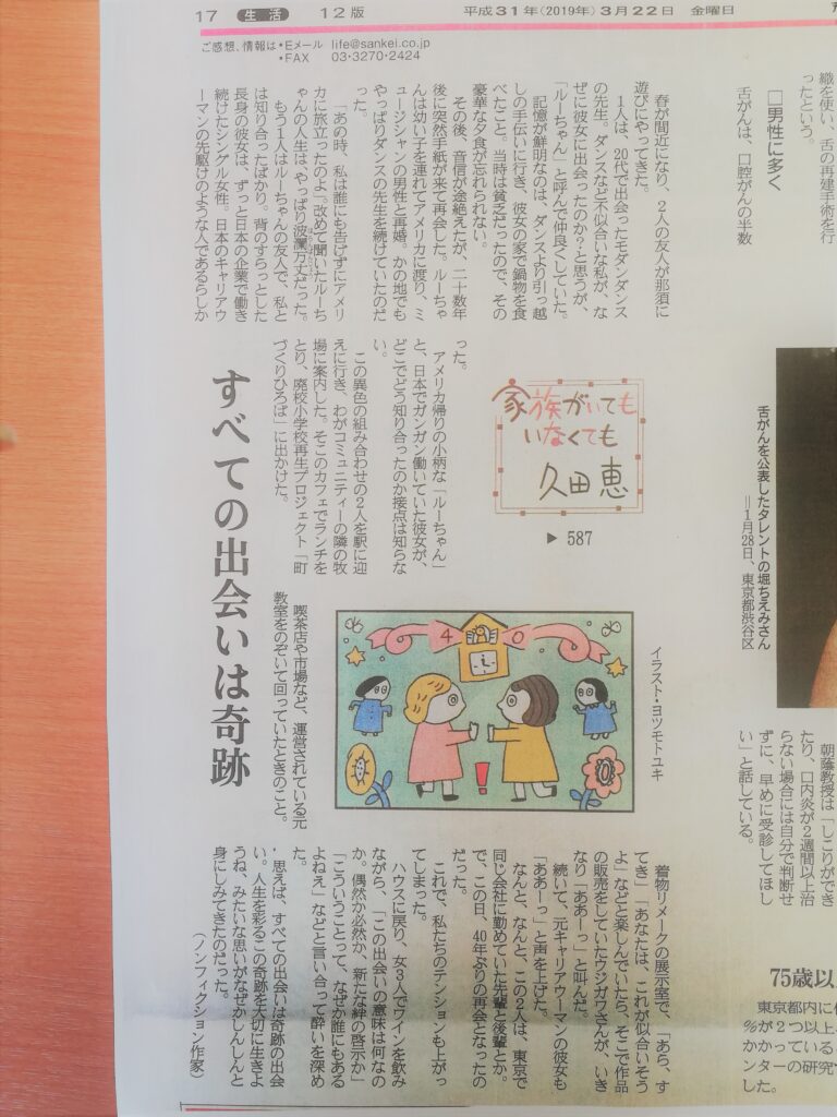 産経新聞掲載「すべての出会いは奇跡」